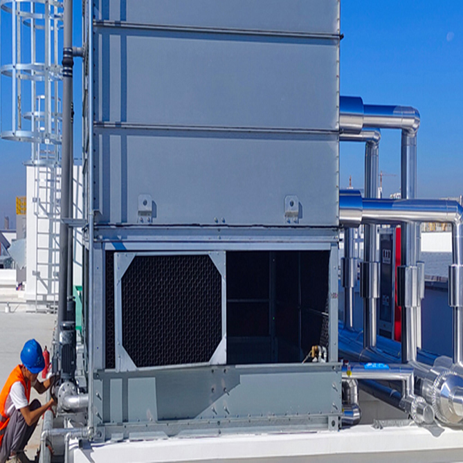 防凍:在寒潮期間,環(huán)境溫度可能會很低,導致設備出現(xiàn)凍結、凝固、析出結晶等現(xiàn)象。因此,需要確保設備在寒潮期間保持適當?shù)臏囟龋苊獬稣9ぷ鳒囟葏^(qū)間,對于正在使用中的設備,需要開啟循環(huán)水塔或冰水機的電輔助加熱功能,配有散熱風扇調(diào)節(jié)器的循環(huán)水塔,可以調(diào)節(jié)水塔的散熱扇的開啟溫度,另外,為了降低循環(huán)冷卻水的凝固點,可在循環(huán)的水路中添加適量的乙二醇或防凍液,一般按量添加約35%即可。